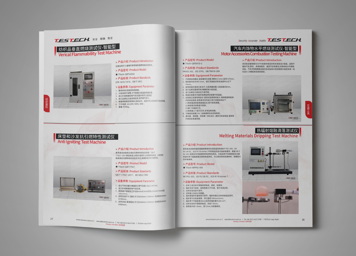 泰思泰克(蘇州)檢測儀器科技有限公司多年從事并致力于高端阻燃測試設(shè)備的研發(fā)、生產(chǎn)、銷售及技術(shù)服務(wù)!泰思泰克科技有限公司-擁有國際化視野-致力于提升中國火災(zāi)檢測、阻燃測試設(shè)備的技術(shù)水平。公司成立之初依托國際化的團(tuán)隊(duì)、美國技術(shù)輸入及進(jìn)口傳感器資源既以中高端品牌介入中國市場為中國客戶提供安全、精確、穩(wěn)定的檢測儀器及解決方案!經(jīng)過多年的沉淀和積累,泰思泰克深入掌握所有燃燒測試及安全相關(guān)技術(shù)。公司在煙氣密度分析、煙氣毒性分析、燃燒熱釋放測量技術(shù)、熱輻射供火的安全性技術(shù)、標(biāo)準(zhǔn)火焰的穩(wěn)定性控制、火焰熱量及溫度的校準(zhǔn)系統(tǒng)等相關(guān)技術(shù)均達(dá)到國際領(lǐng)先水平。
