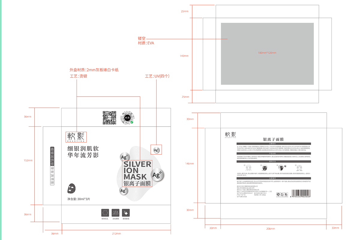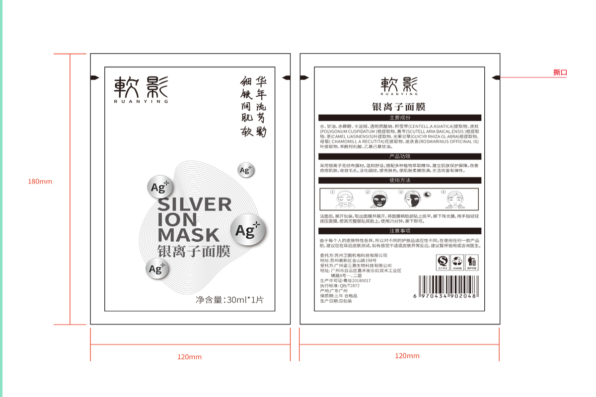 【品牌介紹】銀離子面膜|抗痘消炎凈膚,銀離子面膜,通過特殊的處理,將納米銀覆著在無紡布上,不間斷的釋放出銀離子,提升膚色,使肌膚飽滿,光潔而有彈性,整個包裝設(shè)計考慮到銀離子的特性,色彩以銀色為準(zhǔn),加上凹凸和燙銀的工藝,彰顯品質(zhì)感。