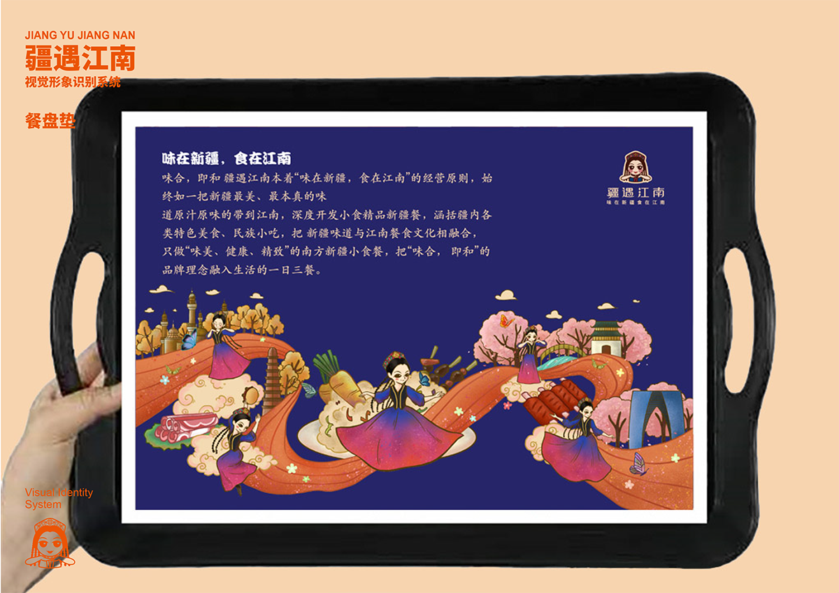 品牌介紹 :疆遇江南餐飲連鎖品牌設計,蘇州外來人口及外來人口指 數均列江蘇第一。由此形成特有的蘇州餐飲文化,南北方味道交融,中原與異域風味 共存, 讓更多外來人口享受蘇式美味的同時,也能吃到更多來自家鄉以及其他城市的特色美食。 疆遇江南就是這 樣一個來自新疆,落地蘇州的特色美食餐飲品牌。在保留原有新疆美食 經典菜系的同時,融入蘇式文化,打造 一個全新的餐飲體系,形成名片化、連鎖化運作的地域餐飲品牌.
