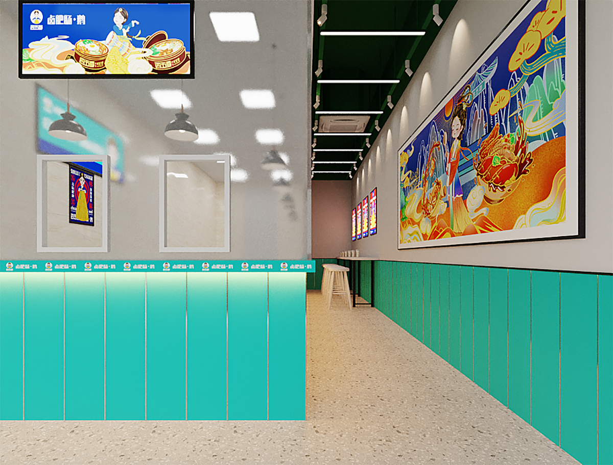 本次為鹵肥腸小吃店品牌設(shè)計及裝修設(shè)計方案,業(yè)主希望打造一個精致、簡約的小吃店以外賣為主,堂食為輔,來顛覆人們對街邊小吃店傳統(tǒng)的刻板印象,賦予傳統(tǒng)美食新的生命力,設(shè)計師以“簡約、精致、柔和”作為小吃店的設(shè)計理念,以現(xiàn)代設(shè)計語言,重新賦予了傳統(tǒng)小吃新的生命力,打造一個特色綠色小吃的設(shè)計風(fēng)格。