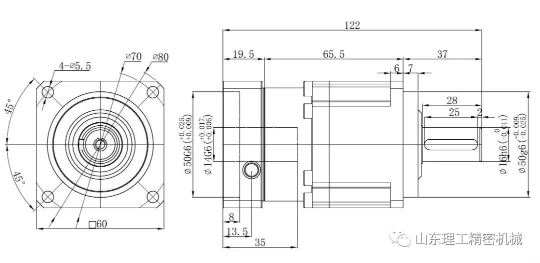 例如這樣一個圖紙,第一個接口是減速機(jī)與伺服電機(jī)的接口,這個通常是需要定制的,減速機(jī)生產(chǎn)廠家會根據(jù)客戶選擇的伺服電機(jī)的接口來定制減速機(jī)的接口,所以在和減速機(jī)供應(yīng)商溝通的時候,你需要提供伺服電機(jī)的接口給他們。