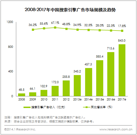 國內網絡廣告市場規模在突破千億大關之后,隨著市場的成熟度不斷提高,將在未來幾年放緩增速,平穩發展。