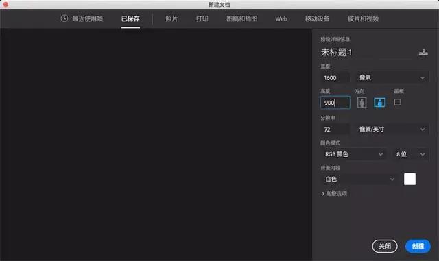 在Photoshop中創建一個1600 x 900像素白色背景的新文檔。
