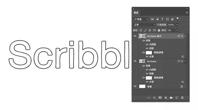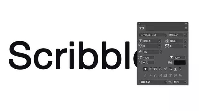 使用文本工具創建一個新的文字圖層,并輸入你的文本。我使用了Helvetica Neue Regular,并輸入了“Scribble”這個詞。 右鍵單擊文本圖層轉換將其轉換為智能對象。