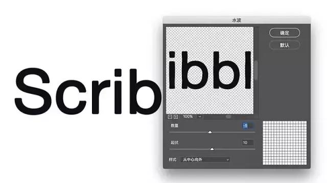 選擇濾鏡>扭曲>水波。輸入數量值為-5,起伏值為10,樣式為從中心向外。