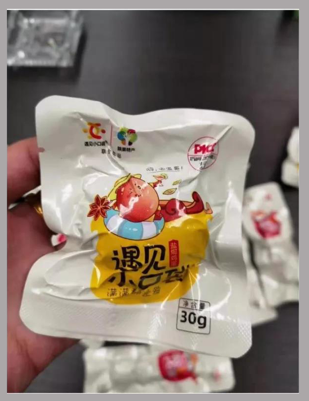設計配色時用了棕色系,既突顯了鹵蛋本身的顏色,與白底包裝袋形成鮮明對比,同時這樣一深一淺的搭配,也讓整體畫面更加明快。