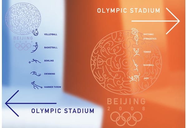 設計理念其實非常中國風,以中國的象形文字為主,各個組成部分是運動選手們的圖形解釋,表達了多種競技形式的結合,細節處理極其強大。