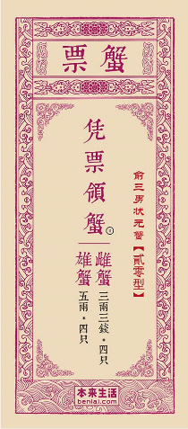 此外,為了制造銀票那種原汁原味的感覺,我們把傳統的“蟹券"改名為“蟹票”字體和排列方式也與銀票一一吻合。一張沒有大閘蟹圖案的蟹票就這樣誕生了,客戶看到這張盤票不會聯想到大閘蟹嗎?我想不會的,他們會聯想到高高品質的大閘蟹。