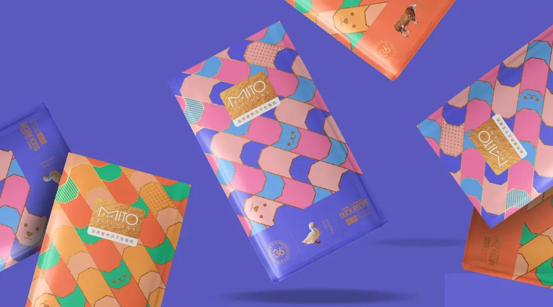 將LOGO中的 “M” 巧妙變化為一張貓臉,由此順理成章的推演出“貓頭”、“狗頭”這兩個品牌超級符號,經(jīng)過無縫拼接構(gòu)成產(chǎn)品包裝及貓牌、狗牌、膠帶、拼圖等一些列周邊產(chǎn)品,讓品牌形象更加生動鮮活。品牌有幾種不同的包裝外形,排列撞色下,每一款包裝都有著獨(dú)特的視覺識別性。