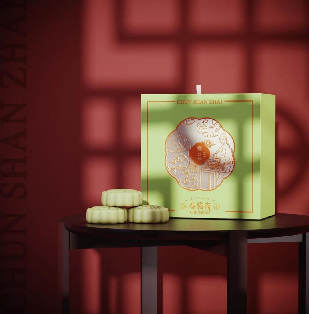 “首飾盒”系列:草綠色的外盒,以傳統(tǒng)花窗的形式展現(xiàn)燙印工藝,立體線條勾勒了相關(guān)的制作和購買場景,首飾盒式的設(shè)計更具美感。