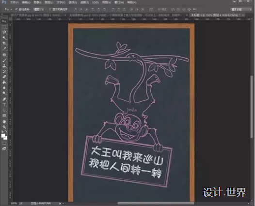 8.然后使用移動工具把猴子拖到一個黑板背景上就ok啦!可以加上一些粉筆字(不會的小伙伴們可以在網(wǎng)上找下教程哦)