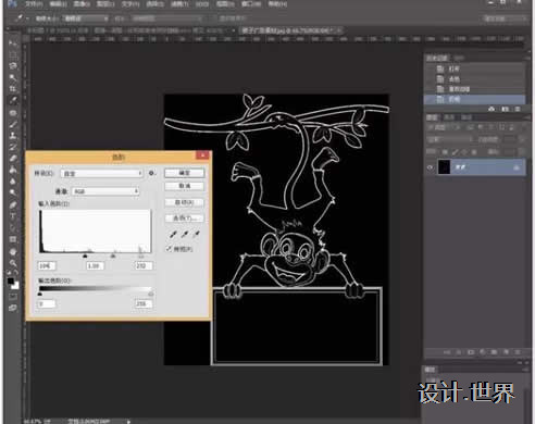 5.點擊:圖像—調整—色階,或者使用快捷鍵ctrl+l。這個操作的目的是讓主體看起來更清晰和減少一些不必要的細小的線條。這個根據(jù)個人喜歡的圖片效果來調整啦。