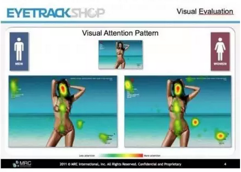 男人花更多時間看“美女”,而女人會花更多時間閱讀美女之外的廣告。