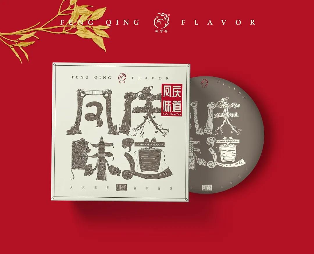 另一個“鳳慶味道”的主題包裝,也提取了產(chǎn)地的風(fēng)俗與自然風(fēng)光,如野生動物、古茶樹、吊橋等經(jīng)典景觀,通過圖案化的再處理,凸顯整體的視覺質(zhì)感。而字體插畫的設(shè)計,則通過凹凸工藝,展現(xiàn)整體的肌理感與觸感,給予消費者良好的感觀體驗。